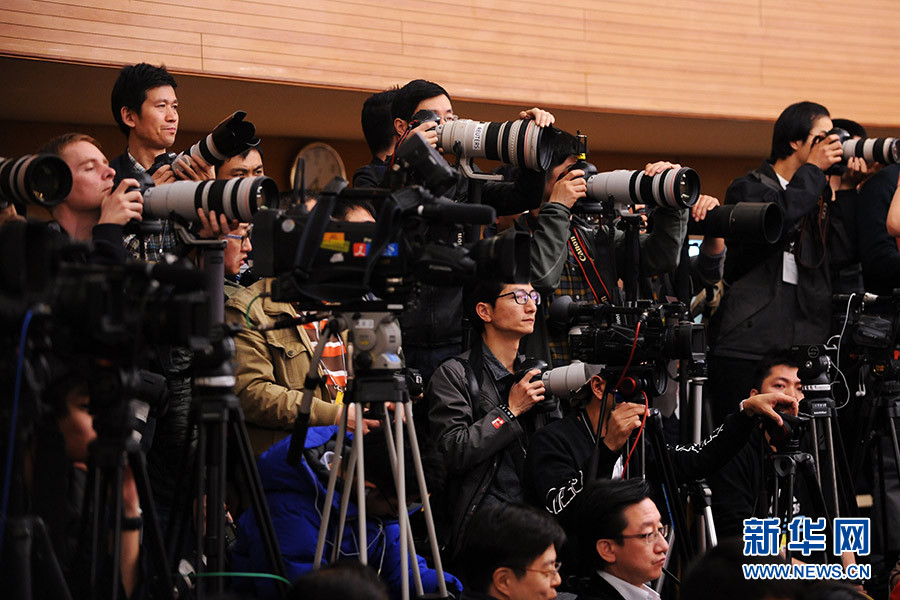 3月12日,十二屆全國人大四次會(huì)議在梅地亞中心多功能廳舉行記者會(huì),邀請(qǐng)中國銀行業(yè)監(jiān)督管理委員會(huì)主席尚福林、中國證券監(jiān)督管理委員會(huì)主席劉士余、中國保險(xiǎn)監(jiān)督管理委員會(huì)主席項(xiàng)俊波回答中外記者的提問。圖為現(xiàn)場(chǎng)記者席。新華網(wǎng)/中國政府網(wǎng) 陳杰 攝