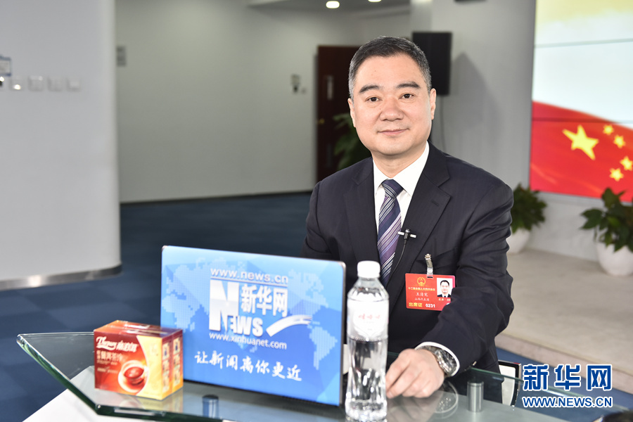 ?3月12日,全國人大代表,運(yùn)城市市長(zhǎng)王清憲做客新華網(wǎng)2016全國兩會(huì)特別訪談,與新華網(wǎng)網(wǎng)友在線交流。圖為王清憲在訪談現(xiàn)場(chǎng)。新華網(wǎng) 付宇鵬 攝
