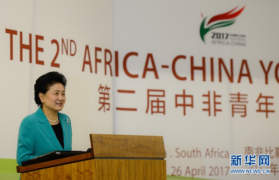 4月26日,中國國務(wù)院副總理劉延?xùn)|在南非比勒陀利亞出席第二屆中非青年大聯(lián)歡閉幕大會并致辭。 新華社記者 翟健嵐 攝