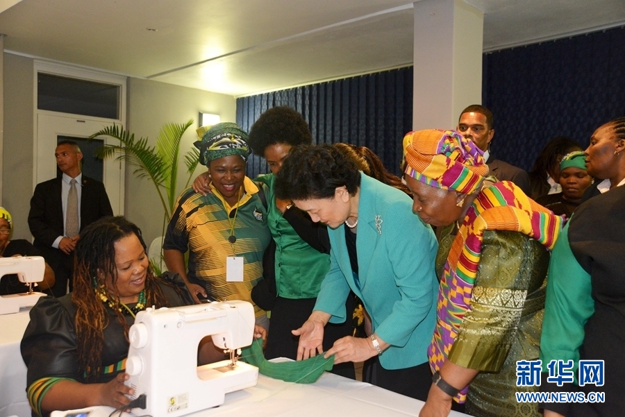 4月26日,中國國務(wù)院副總理劉延?xùn)|(中)在南非德班出席全國婦聯(lián)向非國大婦聯(lián)捐贈縫紉機(jī)儀式。 新華社記者田弘毅攝