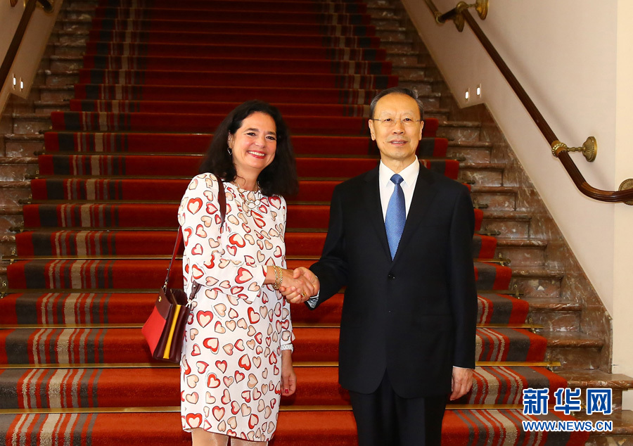 7月4日,在比利時首都布魯塞爾,中共中央書記處書記、全國政協(xié)副主席杜青林(右)會見比利時聯(lián)邦參議長德弗萊涅。應(yīng)德弗萊涅邀請,杜青林率中共代表團于7月4日至5日訪問比利時。 新華社記者龔兵攝