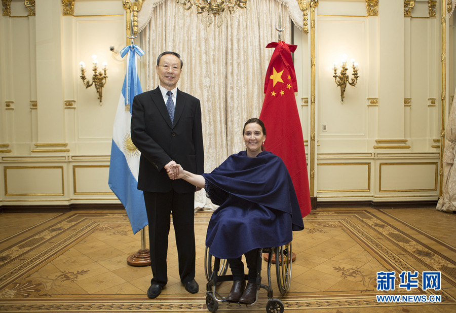 7月7日,中共中央書(shū)記處書(shū)記、全國(guó)政協(xié)副主席杜青林(左)在阿根廷首都布宜諾斯艾利斯會(huì)見(jiàn)阿根廷代總統(tǒng)兼參議長(zhǎng)米切蒂。新華社發(fā)(馬丁·薩巴拉攝)