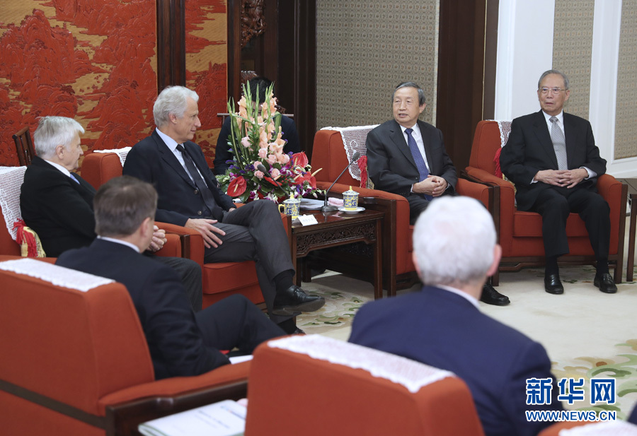 9月22日,國務(wù)院副總理馬凱在北京中南海紫光閣會(huì)見法國前總理多米尼克·德維爾潘等參加首屆中國-歐盟工商領(lǐng)袖和前高官對話的歐方代表。新華社記者馬占成攝