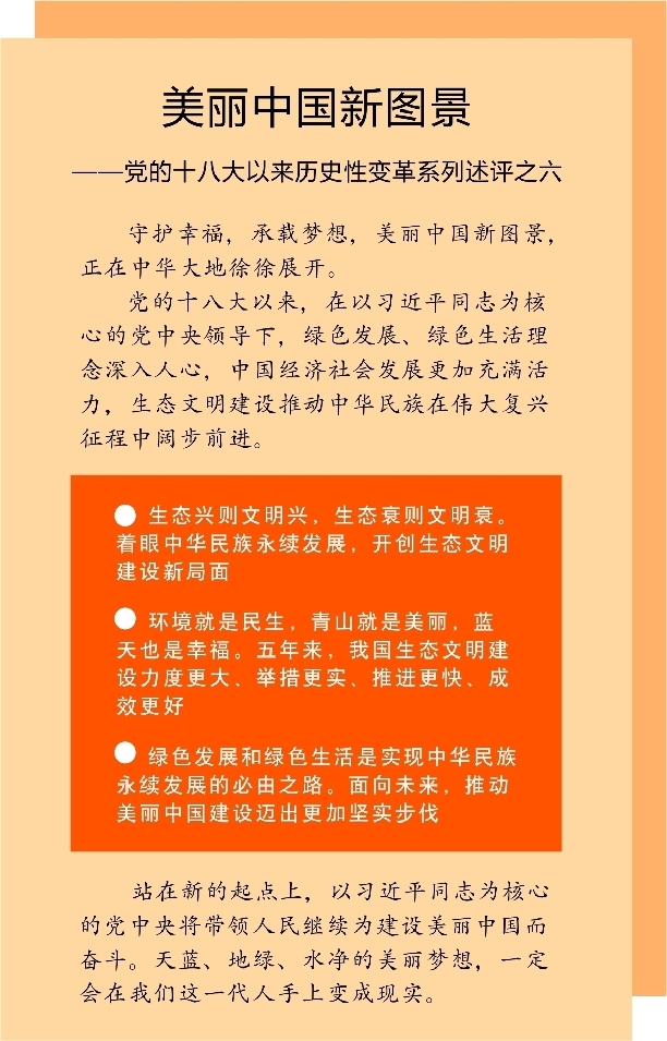 新華社北京10月14日電 題:美麗中國(guó)新圖景——黨的十八大以來(lái)歷史性變革系列述評(píng)之六