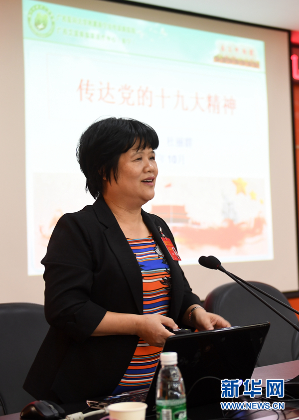 10月30日,在廣西南寧市衛(wèi)計(jì)委,杜麗群在宣講黨的十九大精神。新華社記者 陸波岸 攝