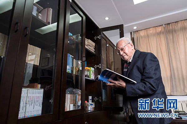 黃旭華院士在辦公室查閱資料(2017年12月15日攝)。新華社記者 熊琦 攝