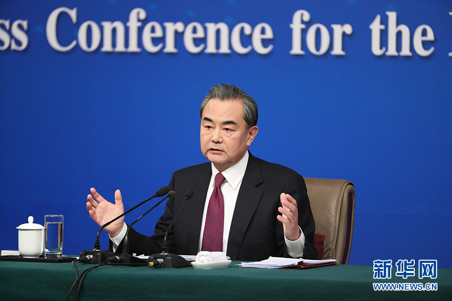 十二屆全國人大五次會議新聞中心于3月8日(星期三)10時在梅地亞中心多功能廳舉行記者會,邀請外交部部長王毅就“中國的外交政策和對外關系”的相關問題回答中外記者的提問。圖為外交部部長王毅回答現(xiàn)場記者提問。新華網(wǎng)/中國政府網(wǎng) 翟子赫 攝