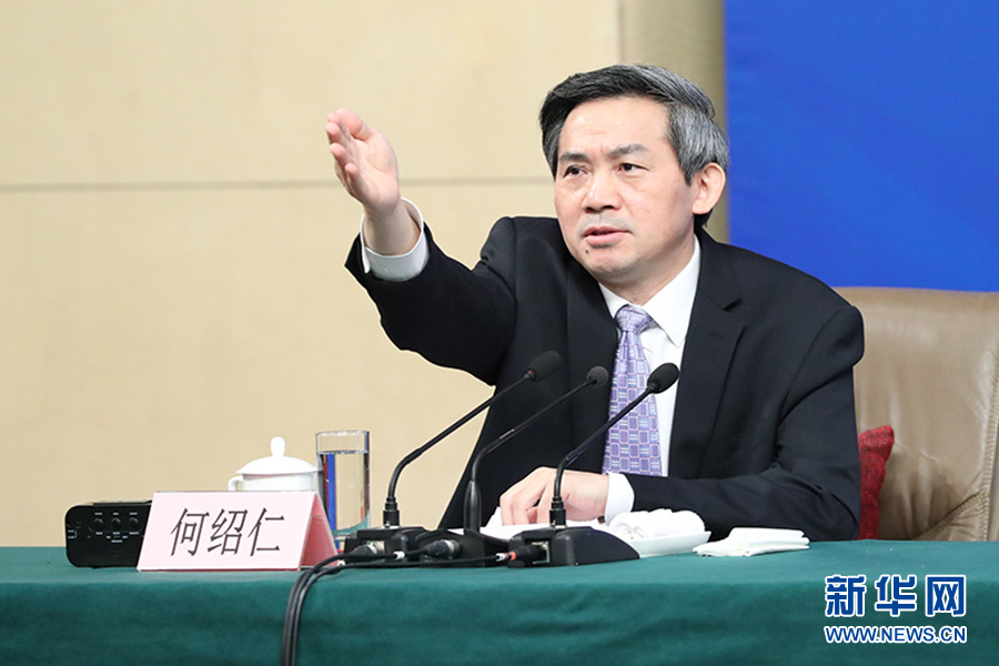 3月11日,十二屆全國人大五次會議新聞中心舉行記者會,主題是“改革開放調結構 創(chuàng)新驅動促發(fā)展”,商務部部長鐘山、副部長王受文、副部長錢克明出席并回答中外記者的提問。圖為記者會主持人何紹仁。 新華網/中國政府網 傅義洲 攝