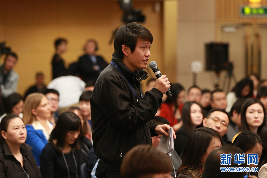 3月12日,十二屆全國人大五次會議新聞中心舉行記者會,邀請教育部部長陳寶生就“教育改革發(fā)展”的相關(guān)問題回答中外記者的提問。圖為湖北日報記者提問。新華網(wǎng)/中國政府網(wǎng) 傅義洲 攝