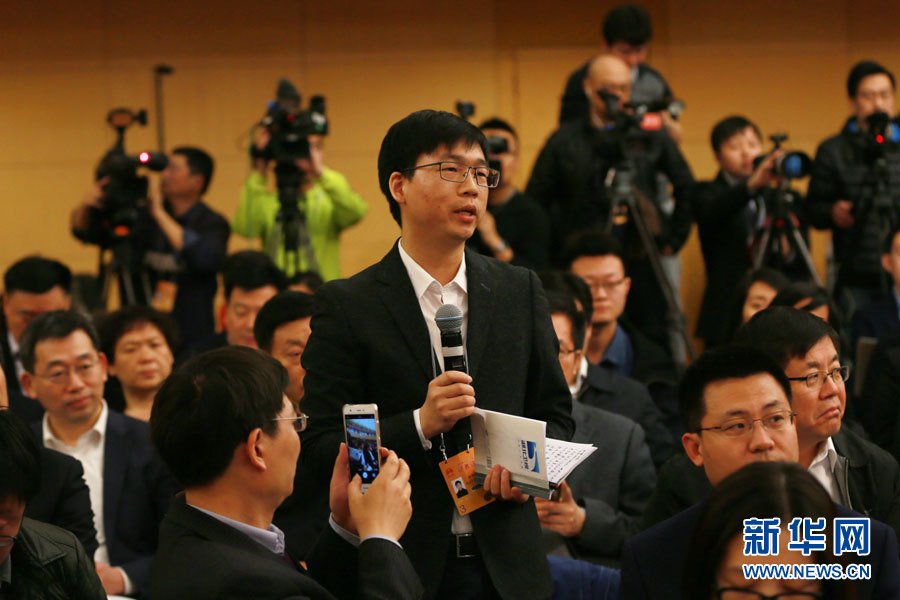 3月14日,十二屆全國人大五次會(huì)議新聞中心舉行記者會(huì),邀請國家質(zhì)檢總局局長支樹平、副局長兼國家認(rèn)證認(rèn)可監(jiān)督管理委員會(huì)主任孫大偉、國家標(biāo)準(zhǔn)化管理委員會(huì)主任田世宏就“質(zhì)量提升”的相關(guān)問題回答中外記者的提問。圖為湖北衛(wèi)視記者提問。新華網(wǎng)/中國政府網(wǎng) 傅義洲 攝?