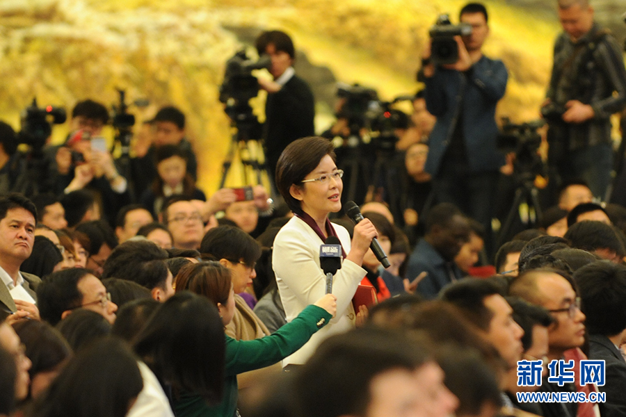 3月15日上午,國(guó)務(wù)院總理李克強(qiáng)在人民大會(huì)堂三樓金色大廳會(huì)見(jiàn)采訪十二屆全國(guó)人大五次會(huì)議的中外記者并回答記者提出的問(wèn)題。圖為中央電視臺(tái)記者提問(wèn)。新華網(wǎng)/中國(guó)政府網(wǎng) 翟子赫 攝?