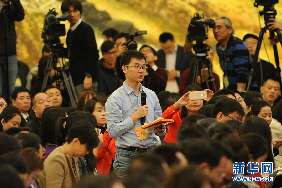 3月15日上午,國務院總理李克強在人民大會堂三樓金色大廳會見采訪十二屆全國人大五次會議的中外記者并回答記者提出的問題。圖為深圳特區(qū)報記者提問。新華網(wǎng)/中國政府網(wǎng) 翟子赫 攝