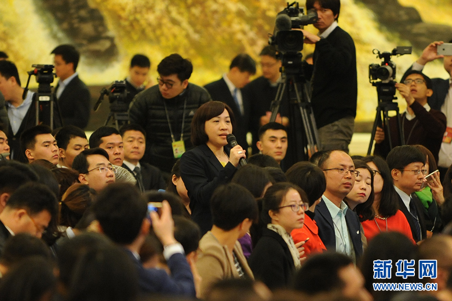 3月15日上午,國(guó)務(wù)院總理李克強(qiáng)在人民大會(huì)堂三樓金色大廳會(huì)見(jiàn)采訪(fǎng)十二屆全國(guó)人大五次會(huì)議的中外記者并回答記者提出的問(wèn)題。圖為臺(tái)灣聯(lián)合報(bào)記者提問(wèn)。新華網(wǎng)/中國(guó)政府網(wǎng)?孫韜 攝?
