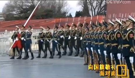董世偉:向國旗是由我喊,敬禮是由三個分隊長同時喊,因為中間有間隔,所以這個口令很難卡到一塊去,這需要不斷磨合,這十幾天的時間我們粗略統(tǒng)計一下,大概練了得有2000多次。
