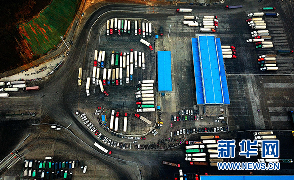 1月16日,來自東盟國家的貨車在憑祥市邊境貿易監(jiān)管中心等候裝運貨物。新華社記者 張愛林 攝
