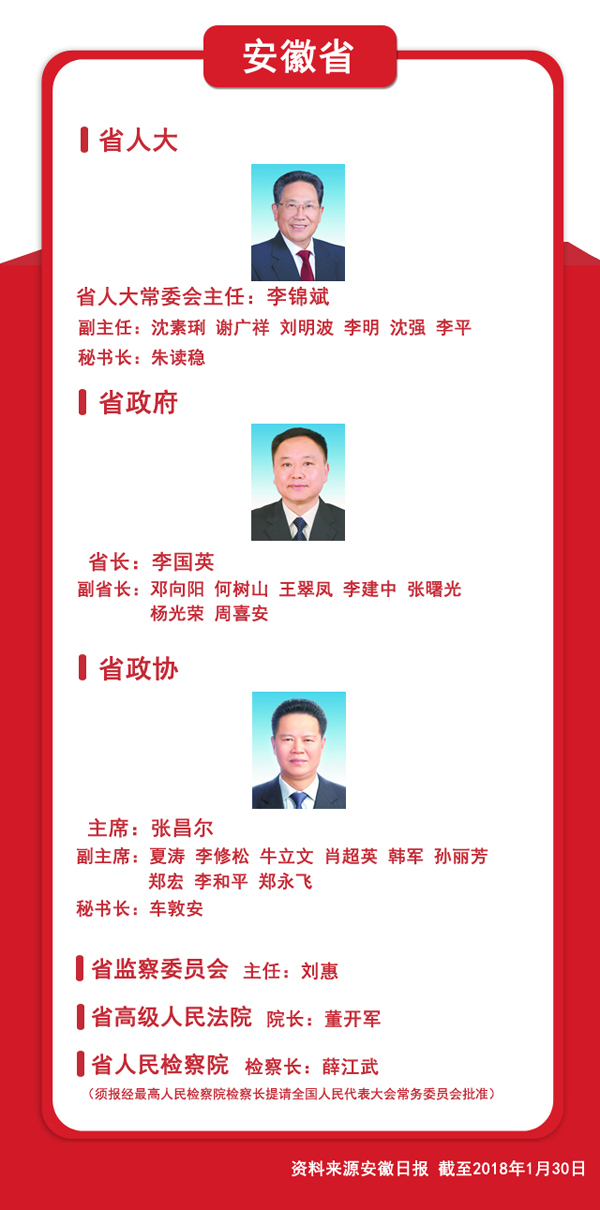 圖文速覽:31省區(qū)市新一屆人大政府政協(xié)領導班子