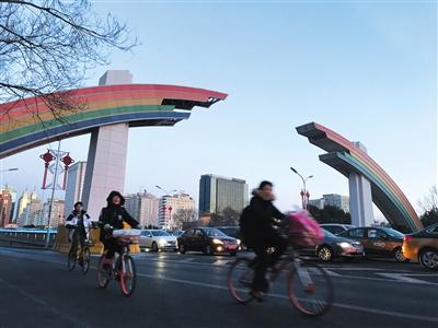 這兩處位于復(fù)興門及建國門的新版彩虹門,在施工約60天后,重新亮相。相關(guān)負責(zé)人介紹,安裝工作已完成,經(jīng)過驗收后,可以重新亮燈。