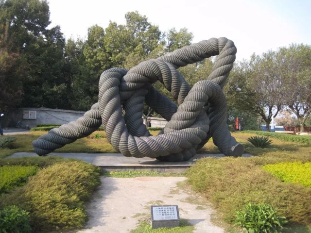 雕塑前一塊石碑上刻著4句話:“一根粗大的繩索,一段曲折的歷史,一個覺醒的過程,一個崛起的時代?!彼囆g(shù)家的設(shè)計(jì)和4句注釋,寓意深刻,發(fā)人深思。
