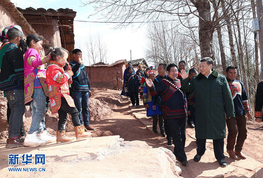 2月11日上午,習(xí)近平總書記驅(qū)車2個多小時,從西昌市來到位于大涼山深處的昭覺縣三岔河鄉(xiāng)三河村、解放鄉(xiāng)火普村,走進(jìn)彝族貧困群眾家中,看實(shí)情、問冷暖、聽心聲,同當(dāng)?shù)馗刹咳罕姽采叹珳?zhǔn)脫貧之策。新華社記者 謝環(huán)馳 攝