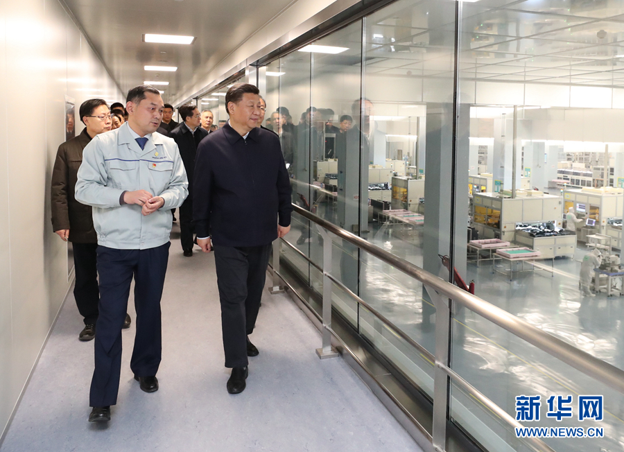 這是2月11日下午,習近平在成都中電熊貓顯示科技有限公司考察。 新華社記者 謝環(huán)馳 攝