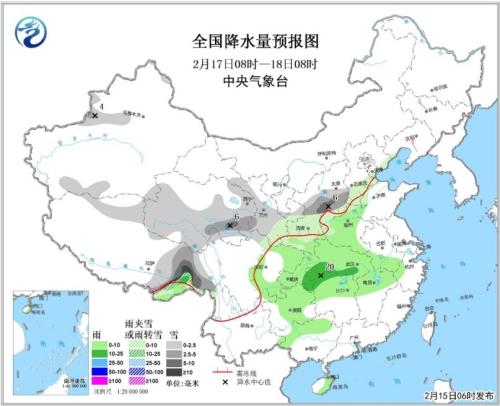 全國降水量預(yù)報(bào)圖(2月17日08時-18日08時)