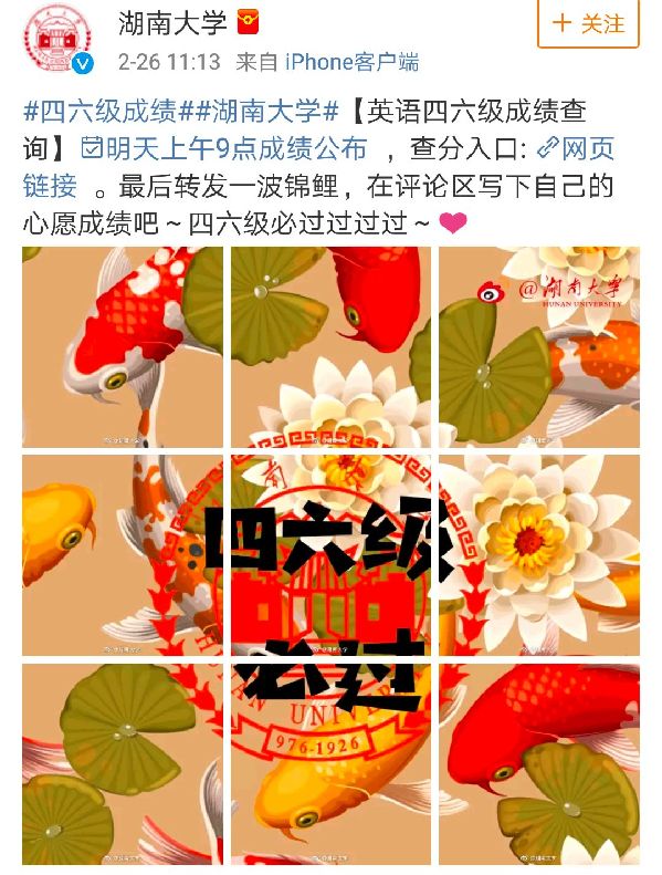 與此同時(shí),昨天不少高校微博也調(diào)皮了,有說“轉(zhuǎn)發(fā)錦鯉”的: