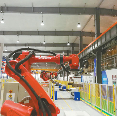 沈陽新松公司智慧工廠機(jī)器人全自動生產(chǎn)車間。王曉輝攝