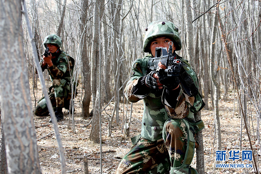 這是特戰(zhàn)隊員正在進行紅藍對抗科目訓練。新華網(wǎng)發(fā) 余文彬 攝
