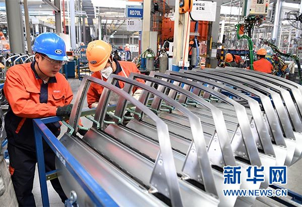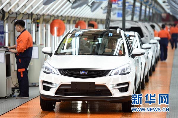 3月27日,工人們在浙江臨海的吉利汽車生產(chǎn)車間工作。新華社記者 殷博古 攝