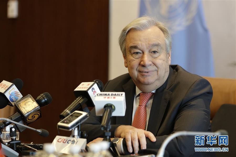 ?。丛拢等眨谖挥诩~約的聯(lián)合國總部,聯(lián)合國秘書長古特雷斯接受中國媒體聯(lián)合采訪。新華社記者李木子攝