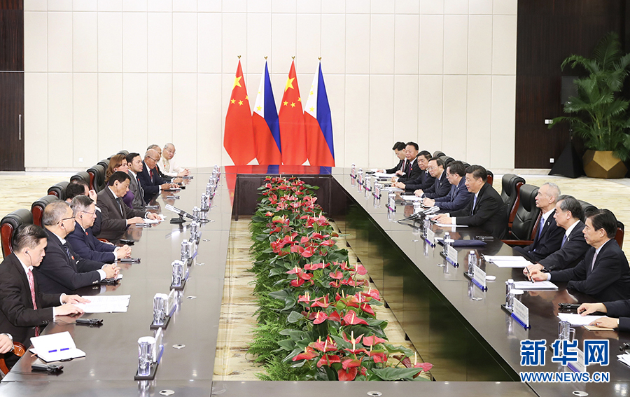 習近平指出,杜特爾特總統(tǒng)就任以來,中菲關(guān)系翻開新篇章。中方愿同菲方一道,堅持睦鄰友好的大方向,確立共同發(fā)展的大目標,發(fā)揚妥處分歧的大智慧,確保中菲關(guān)系始終沿著正確方向健康穩(wěn)定發(fā)展。