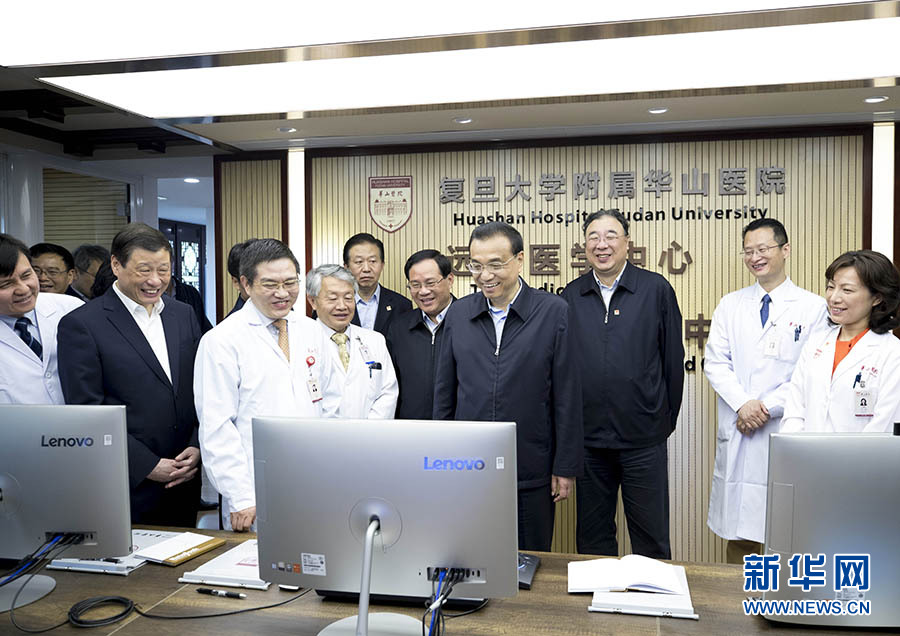 李克強(qiáng)來到華山醫(yī)院,通過互聯(lián)網(wǎng)遠(yuǎn)程會診系統(tǒng)與青海果洛、云南騰沖、新疆喀什的醫(yī)務(wù)人員對話,詢問還有什么困難。他說,中西部地區(qū)尤其是農(nóng)村貧困地區(qū)優(yōu)質(zhì)醫(yī)療資源缺乏,要按照以人民為中心的發(fā)展思想的要求,在繼續(xù)改善中西部地區(qū)中心醫(yī)院檢測設(shè)施的同時,積極發(fā)展“互聯(lián)網(wǎng)+醫(yī)療”,電信部門要為此通專線、提網(wǎng)速,醫(yī)衛(wèi)部門要更大發(fā)掘優(yōu)質(zhì)醫(yī)療資源的潛能,讓好醫(yī)生在中西部基層也能“觸屏可及”。李克強(qiáng)還來到徐匯區(qū)江南新村,對這里實行社區(qū)醫(yī)養(yǎng)結(jié)合,幫助老人們居家養(yǎng)老表示贊許。