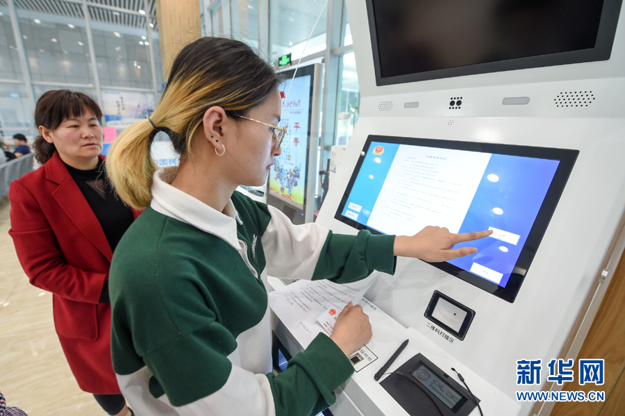 在南京市棲霞區(qū)商事登記服務(wù)大廳,市民用自動終端機(jī)辦理業(yè)務(wù)(3月29日攝)。新華社記者 李博 攝