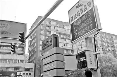 昨天下午,北青報記者來到黃莊路口西北角,周圍鳴笛聲不斷,嘈雜一片。很快,西北角路口處懸掛的LED顯示屏上,就出現(xiàn)了違法鳴笛車輛的車牌號信息。