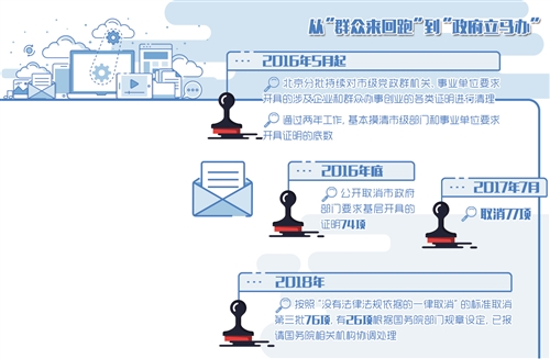 不久前,北京在此前分兩批取消151項(xiàng)市級(jí)部門設(shè)定的企業(yè)群眾辦事創(chuàng)業(yè)證明基礎(chǔ)上,再次取消76項(xiàng)證明事項(xiàng),涉及企業(yè)設(shè)立、經(jīng)營(yíng)許可、困難救助、就讀升學(xué)等各方面。