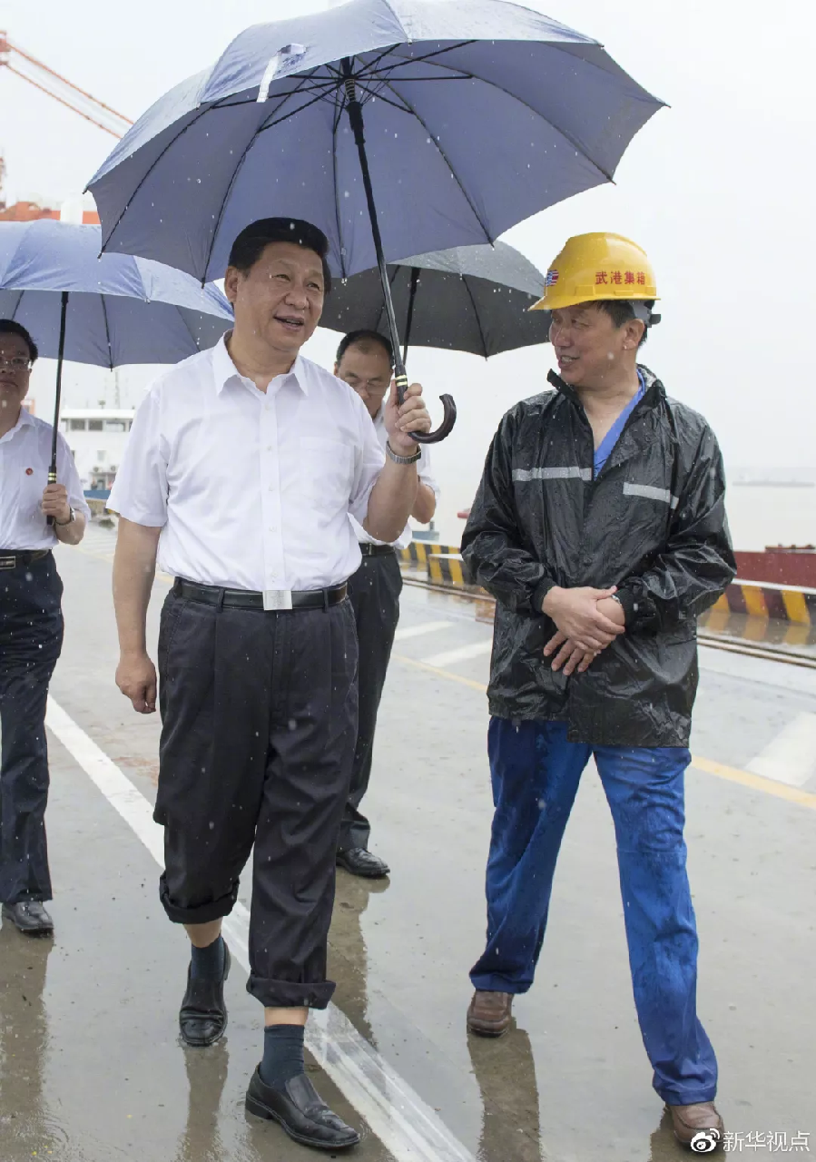 荊楚大地,江河縱橫。2013年7月21日上午,習(xí)近平冒著大雨前往武漢新港陽邏集裝箱港區(qū),卷起褲腿,打著雨傘,趟著積水,了解港口貨物吞吐量情況。他強(qiáng)調(diào),長江流域要加強(qiáng)合作,充分發(fā)揮內(nèi)河航運(yùn)作用,發(fā)展江海聯(lián)運(yùn),把全流域打造成黃金水道。