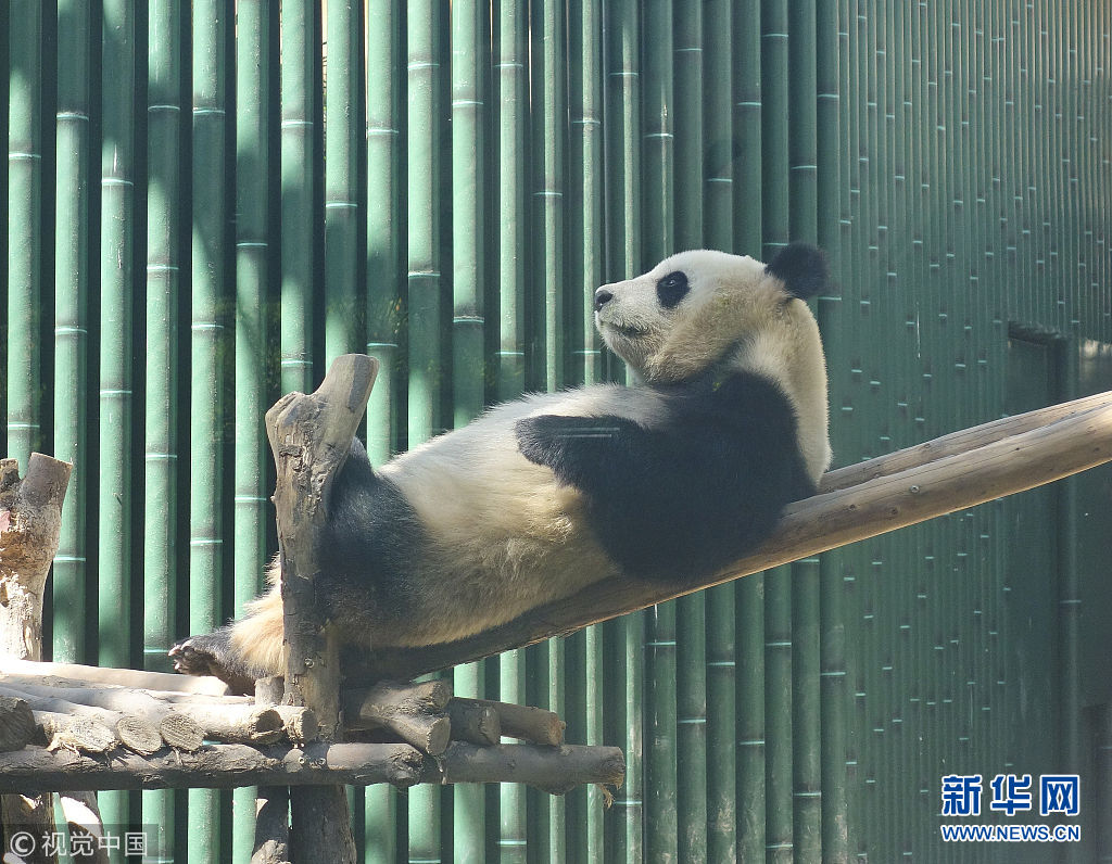5月2日,在動(dòng)物園內(nèi),熊貓曬著太陽,時(shí)不時(shí)伸個(gè)懶腰,翻個(gè)身,笨拙的動(dòng)作盡顯萌態(tài)。(圖片來源:視覺中國(guó))