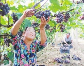 陽(yáng)原縣東城鄉(xiāng)五馬坊葡萄大豐收,農(nóng)戶正在采摘葡萄。仝輝 攝/光明圖片