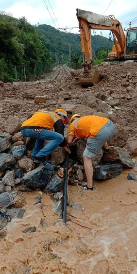 他們頂風(fēng)冒雨巡查線路