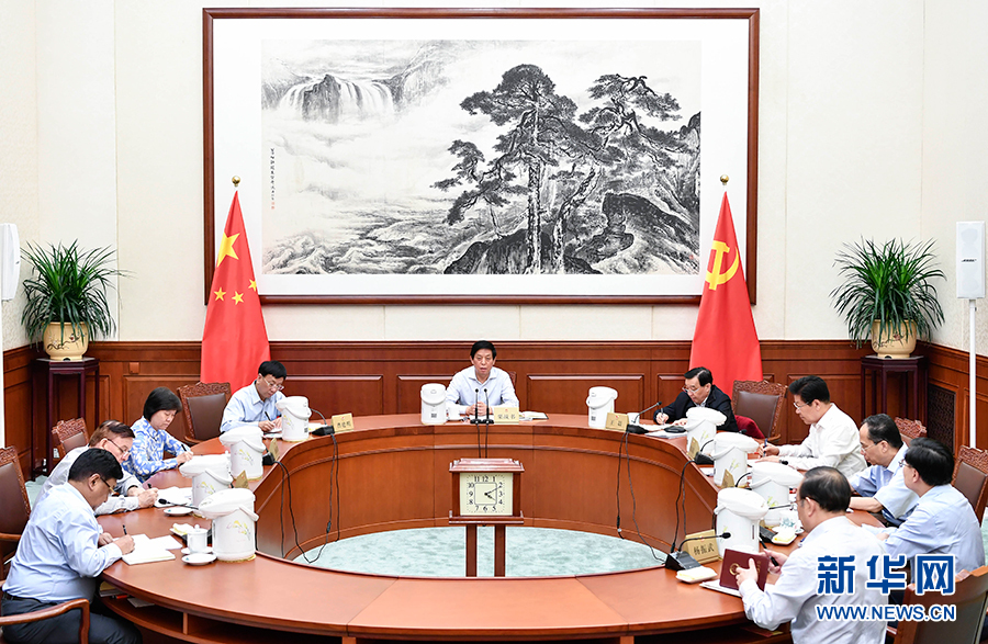 7月16日,全國(guó)人大常委會(huì)黨組在北京召開(kāi)會(huì)議進(jìn)行集體學(xué)習(xí),學(xué)習(xí)習(xí)近平新時(shí)代中國(guó)特色社會(huì)主義思想,以“中國(guó)共產(chǎn)黨的歷史使命”為主題,圍繞“歷史使命、歷史責(zé)任和我們的歷史擔(dān)當(dāng)”進(jìn)行專題討論。全國(guó)人大常委會(huì)委員長(zhǎng)、黨組書記栗戰(zhàn)書主持并講話。 新華社記者 殷博古 攝