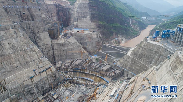 這是白鶴灘水電站建設(shè)工地(7月11日無人機(jī)拍攝)。 新華社記者 胡超 攝