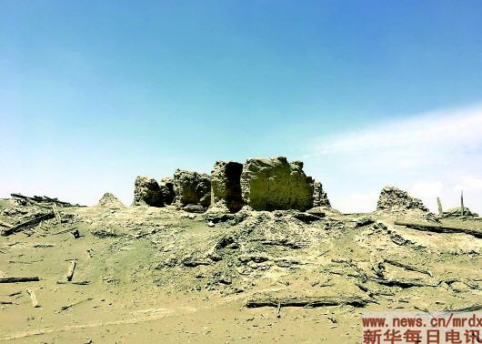 ▲樓蘭遺址內(nèi)的“三間房”(研究認為是當時的官衙)。