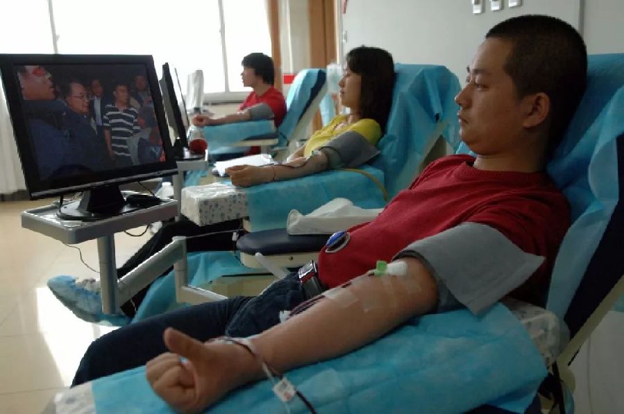 四川汶川地震發(fā)生后,唐山市民紛紛到血站和街頭流動獻血車進行獻血,以表達對災區(qū)人民的支持。(2008年5月14日攝)新華社記者 鞏志宏 攝