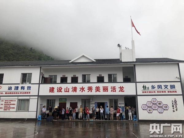 云陽縣盤龍街道活龍社區(qū)居民委員會(huì)整潔的辦公場(chǎng)地,由于下雨,當(dāng)?shù)卮迕裨谶@里向記者介紹他們的綠色發(fā)展新路子。(管昕 攝)