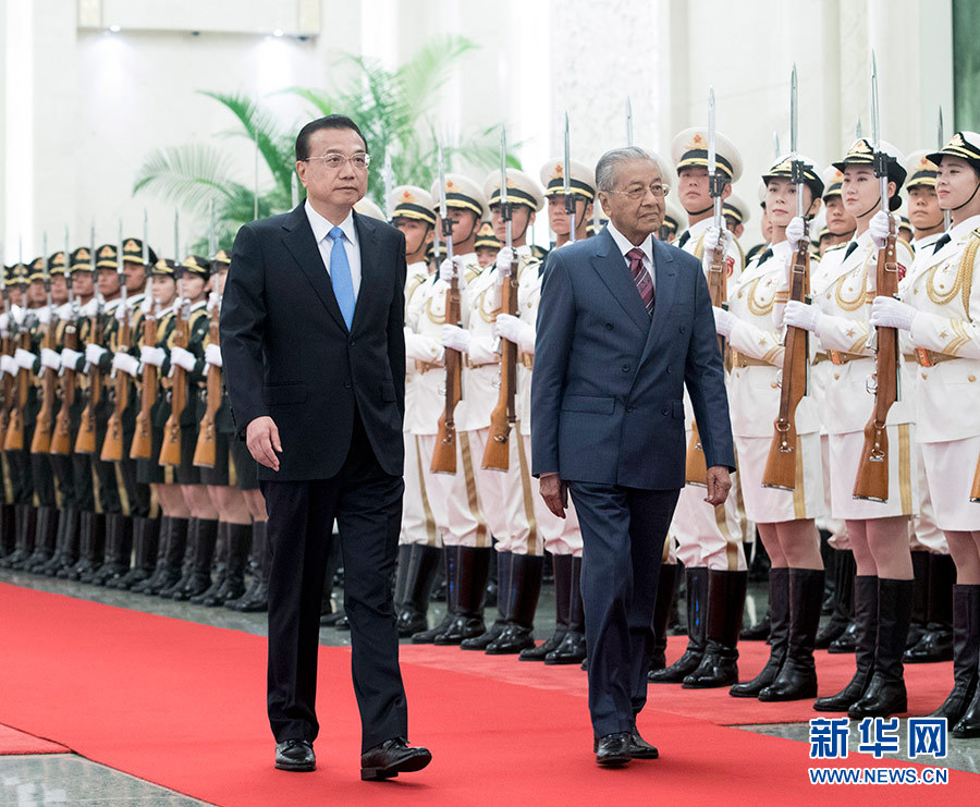 8月20日,國務(wù)院總理李克強(qiáng)在北京人民大會(huì)堂同來華進(jìn)行正式訪問的馬來西亞總理馬哈蒂爾舉行會(huì)談。這是會(huì)談前,李克強(qiáng)在人民大會(huì)堂北大廳為馬哈蒂爾舉行歡迎儀式。 新華社記者 王曄 攝