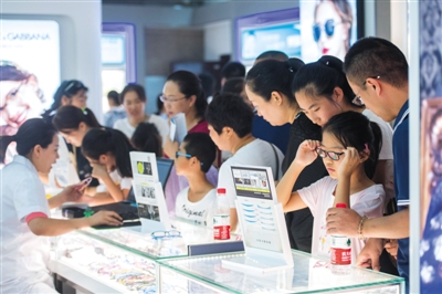8月24日,太原市的山西省眼科醫(yī)院,暑假臨近尾聲,中小學(xué)生在家長(zhǎng)的陪同下檢查視力,扎堆配眼鏡。圖/視覺中國(guó)
