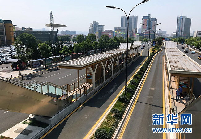 公交專用道設(shè)立在馬路中央,減少了道路兩側(cè)路口以及其他社會車輛對公交運(yùn)營的影響。新華網(wǎng) 郝多 攝