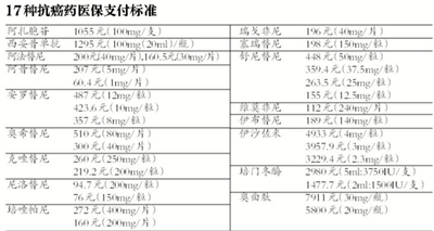 17種抗癌藥納入醫(yī)保 11月底前執(zhí)行