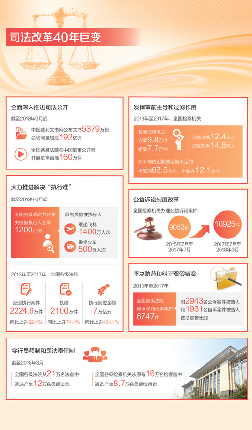原標題? 法安天下 守護公平正義(大數(shù)據(jù)觀察·壯闊東方潮 奮進新時代——慶祝改革開放40年·數(shù)說)
