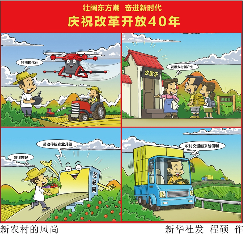 三農(nóng):村村通公路建設(shè)如火如荼,農(nóng)村交通越來越便利了;拖拉機、無人機,種植逐步現(xiàn)代化了;農(nóng)家樂、采摘園,鄉(xiāng)村新產(chǎn)業(yè)發(fā)展了;互聯(lián)網(wǎng)帶動傳統(tǒng)農(nóng)業(yè)升級,農(nóng)產(chǎn)品市場越銷越廣了;農(nóng)民的錢包也越來越鼓了。↓↓
